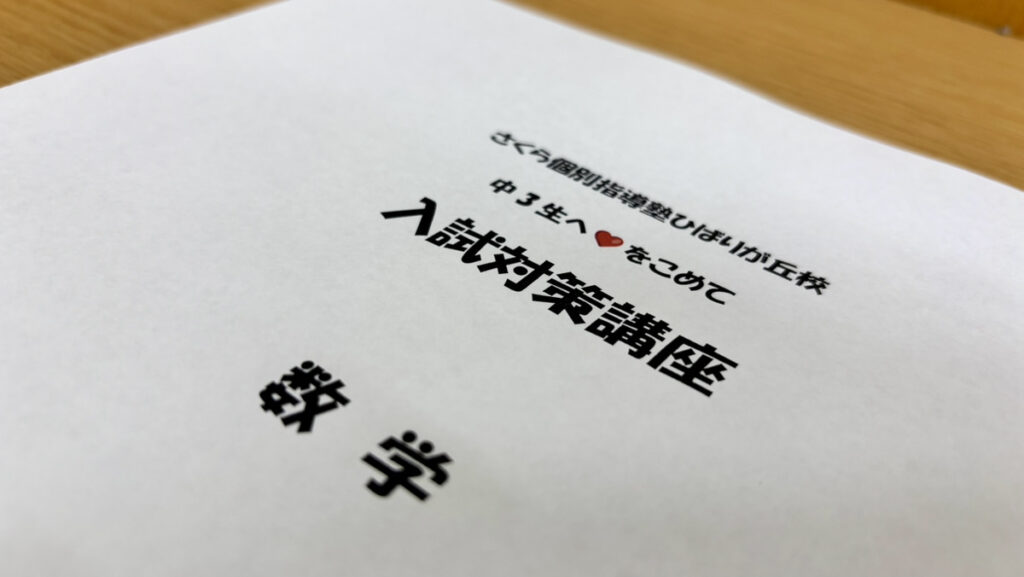 さくら個別指導塾では、入試の傾向を日々徹底的に分析しています。 その分析に基づき、入試直前でも特に点数が伸びやすい単元を厳選して構成しているのがこの講座の特長です。